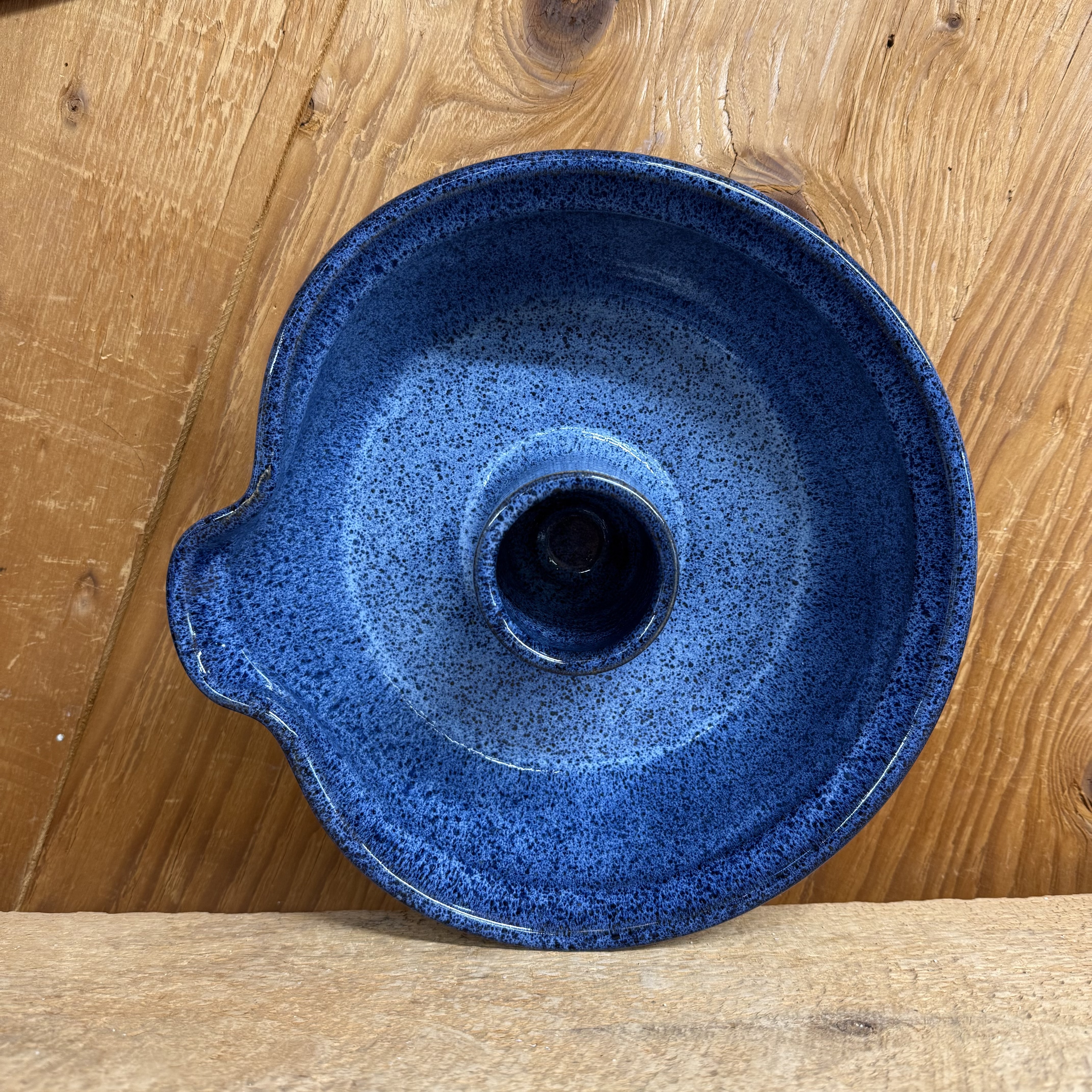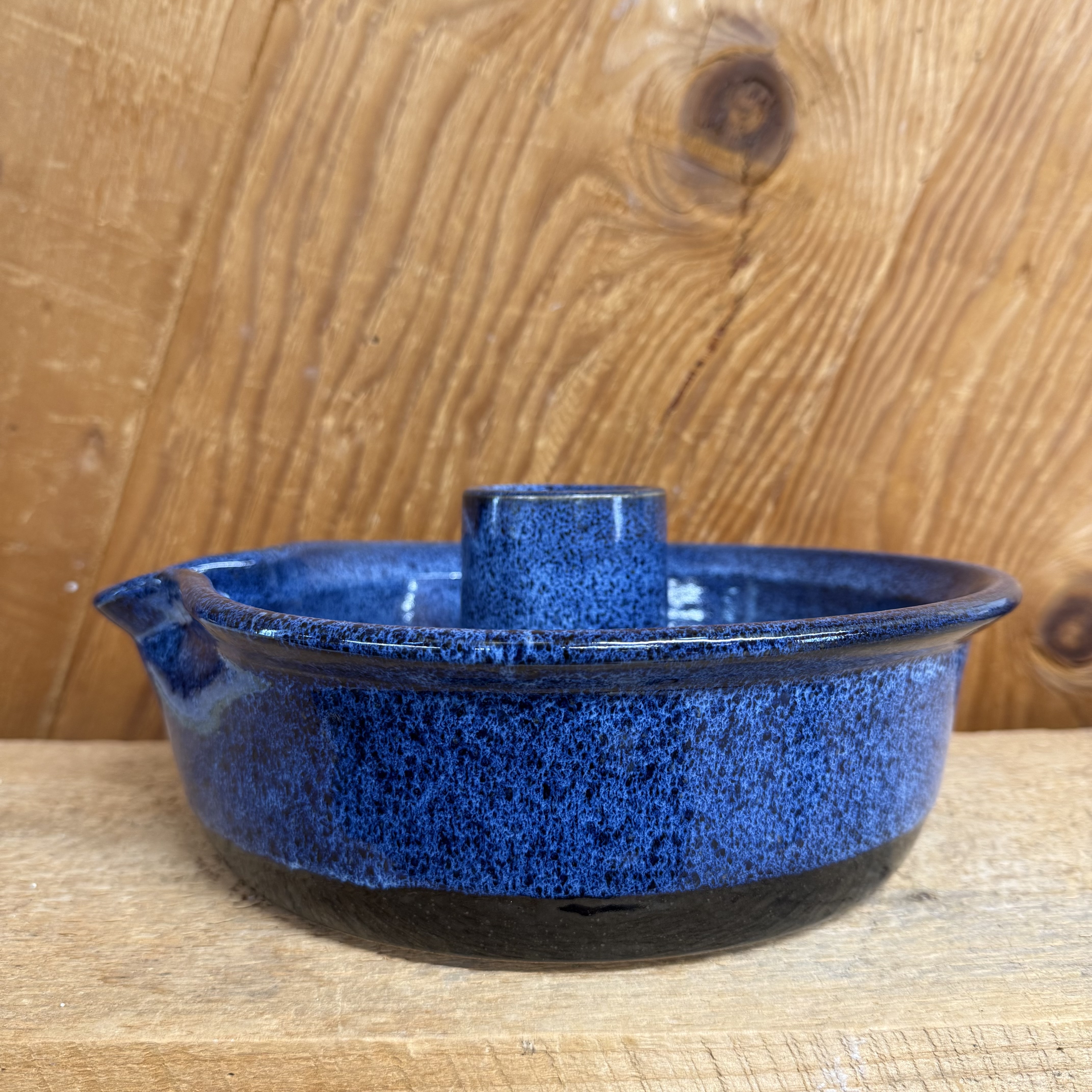 For a very tasty & moist chicken – use your favorite dry spice rub on a clean, dry chicken. Add your favorite beverage to the cylinder (beer, wine, juice, or even root beer), place chicken on the cylinder, standing upright, add root veggies if desired. Add enough liquid to base to cover the bottom of the pot & roast. Comes with directions. Glazed with our popular vibrant dark blue on a black base glaze. Glaze design may vary slightly from the one in the picture. Dishwasher, oven, and microwave safe.