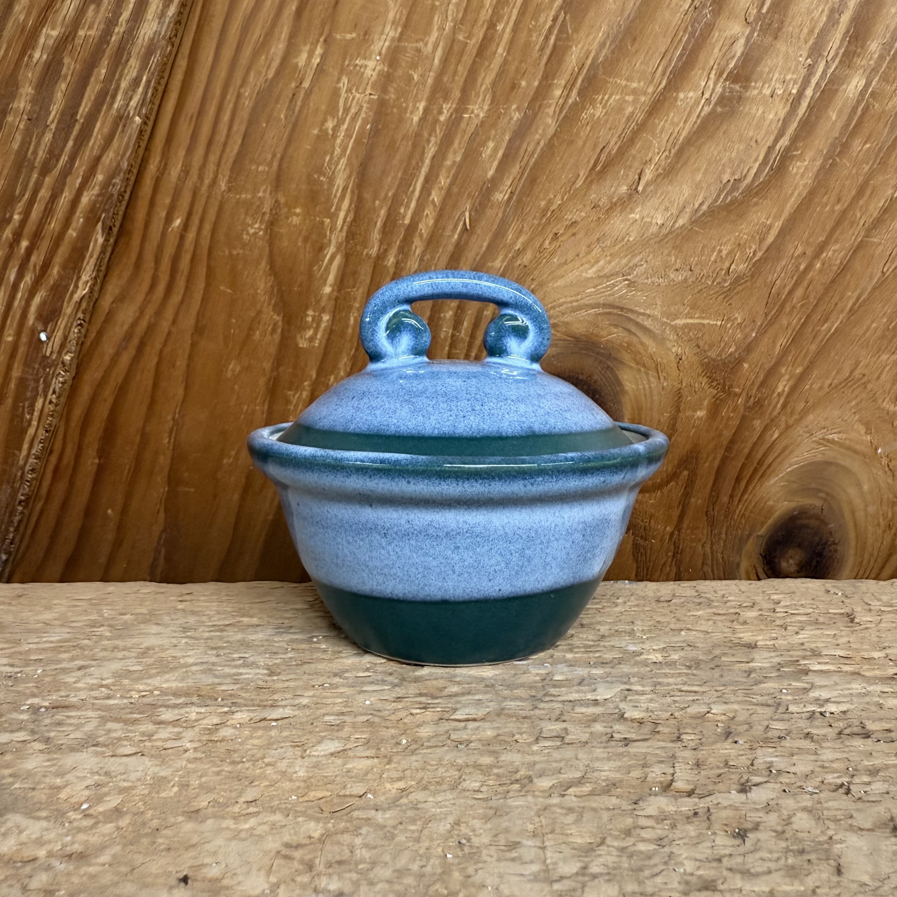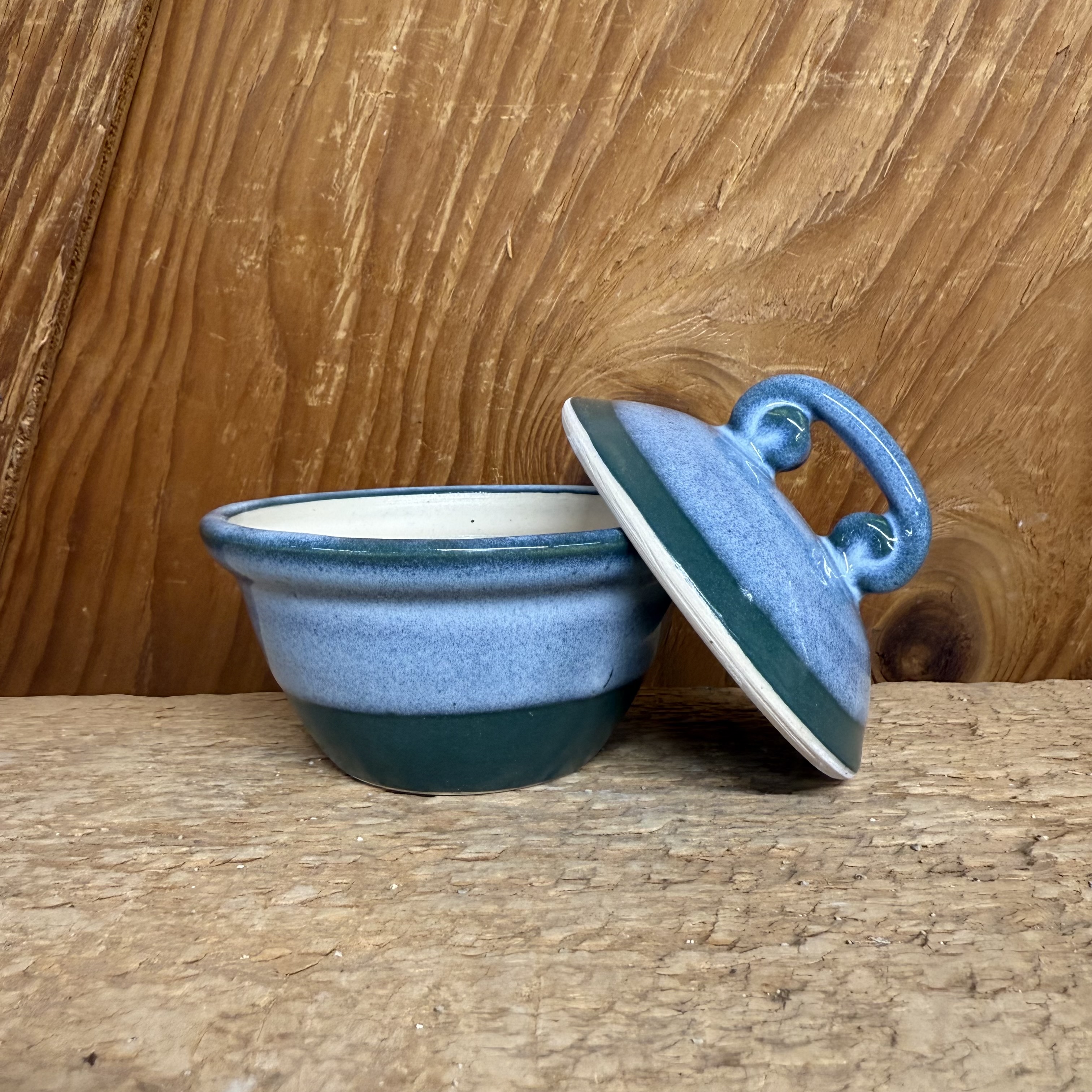 This cute 2 piece egg poacher works in your microwave. Spray bowl with oil /butter (optional). Crack egg into bowl and pierce yolk with a knife to release steam during cooking. Lid comes with vent hole. Just 30 seconds, and voila! A very light, frosty blue that goes over a bright red underglaze. As always, use care when handling hot objects. Glaze design may vary slightly from the one in the picture.