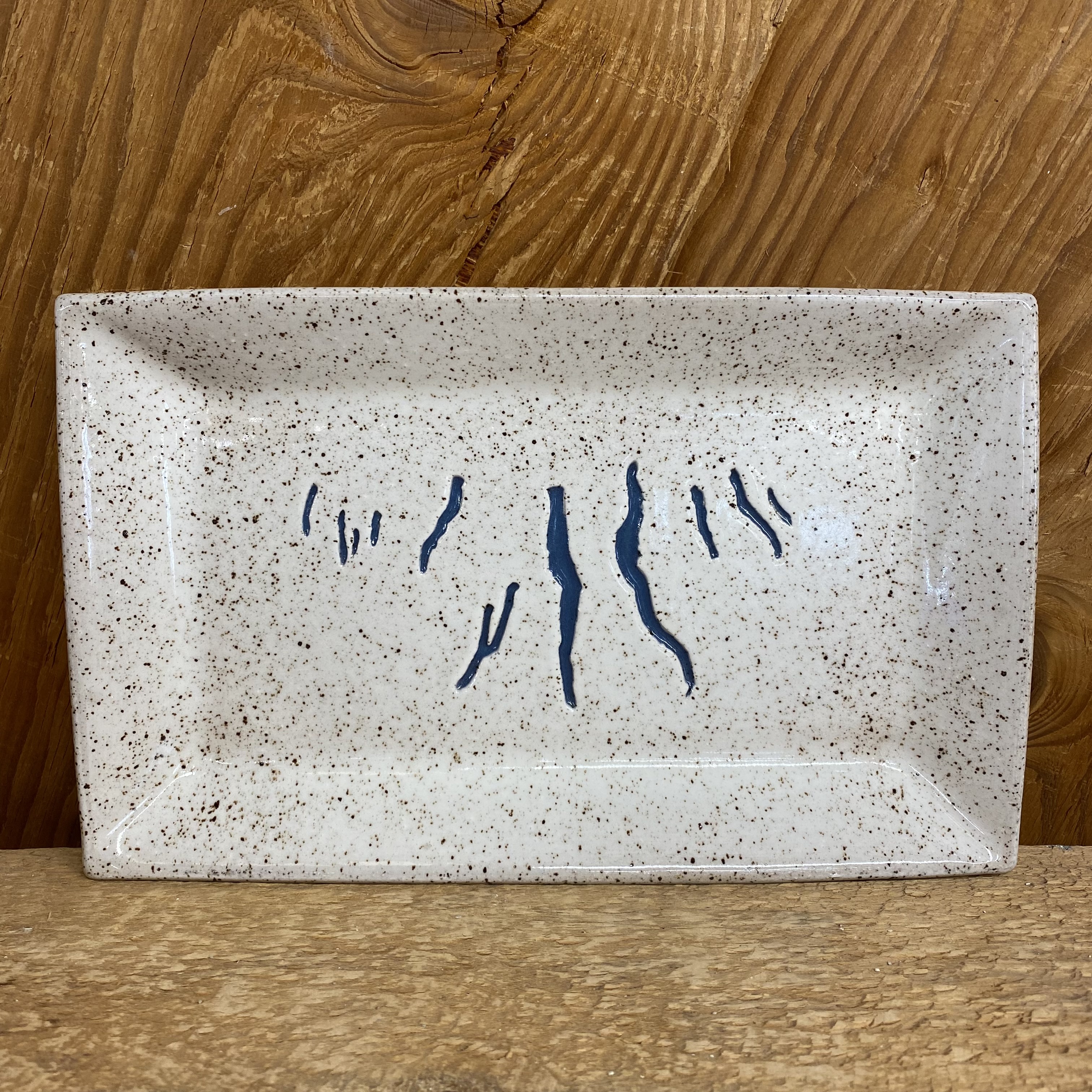 Our best selling Finger Lakes Tray but without the leaves. We made these while waiting for the leaves to come back this May. The Finger Lakes are on an all white background with blue lakes. Finished in clear shiny glaze. Measures approximately 10 1/2″ x 6 1/4″. Lead free and dishwasher, oven, and microwave safe. It can be used for decoration or food. Each one is handmade.