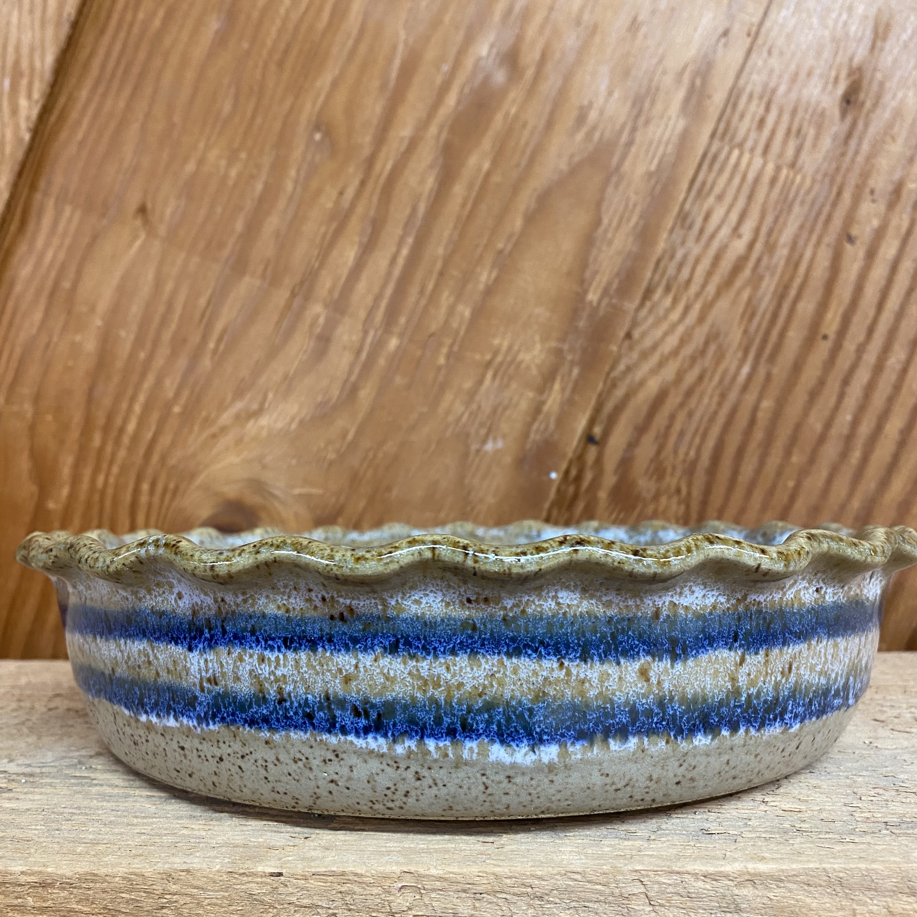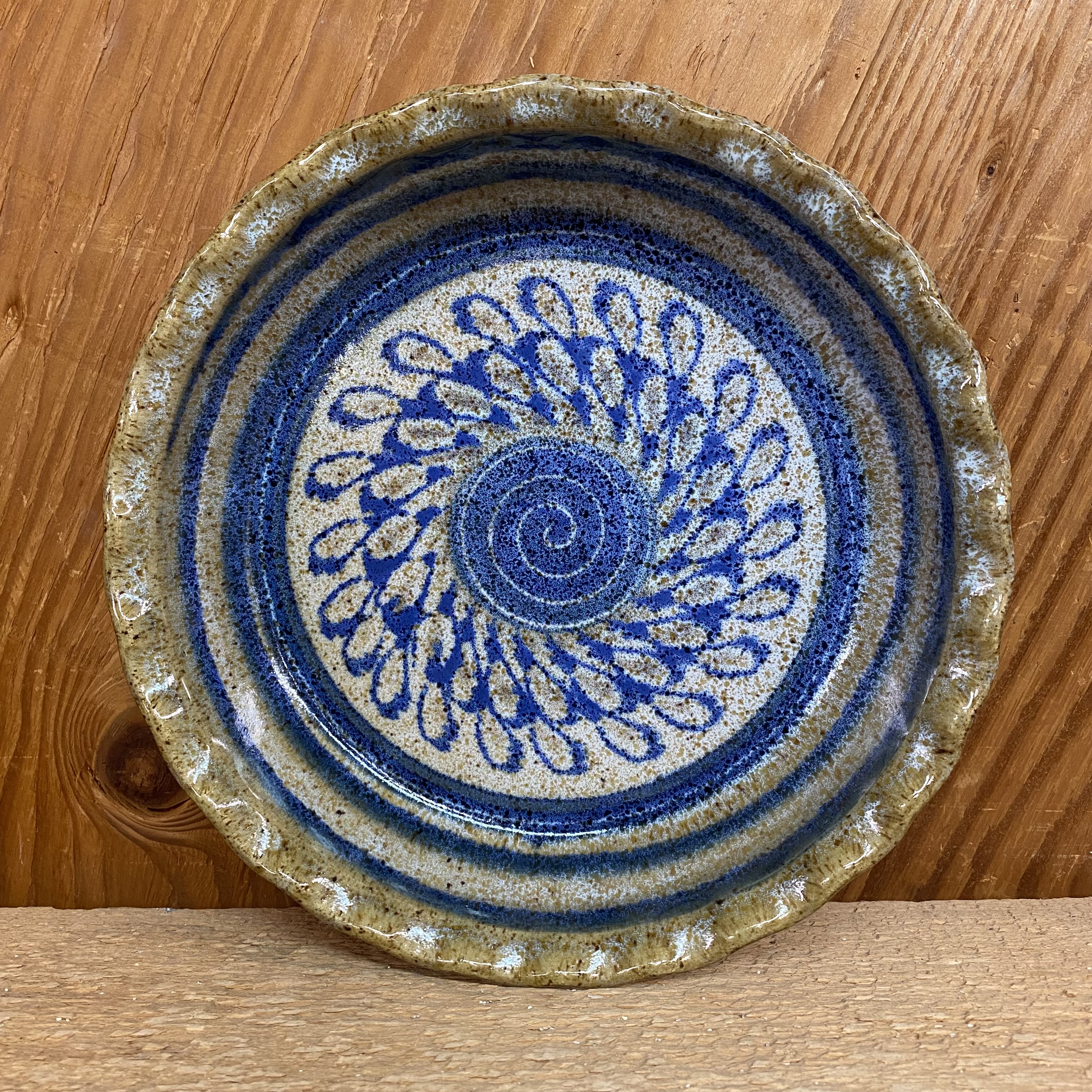 This beautiful hand-painted stoneware pie plate bakes evenly and cleans easily. Microwave, oven, and dishwasher safe. Measures approx. 10″ x 2″ Hand painted with a blue/ teal Aztec design on a neutral base color. Since each one is hand-painted, therefore, glaze design may vary slightly from the one pictured.