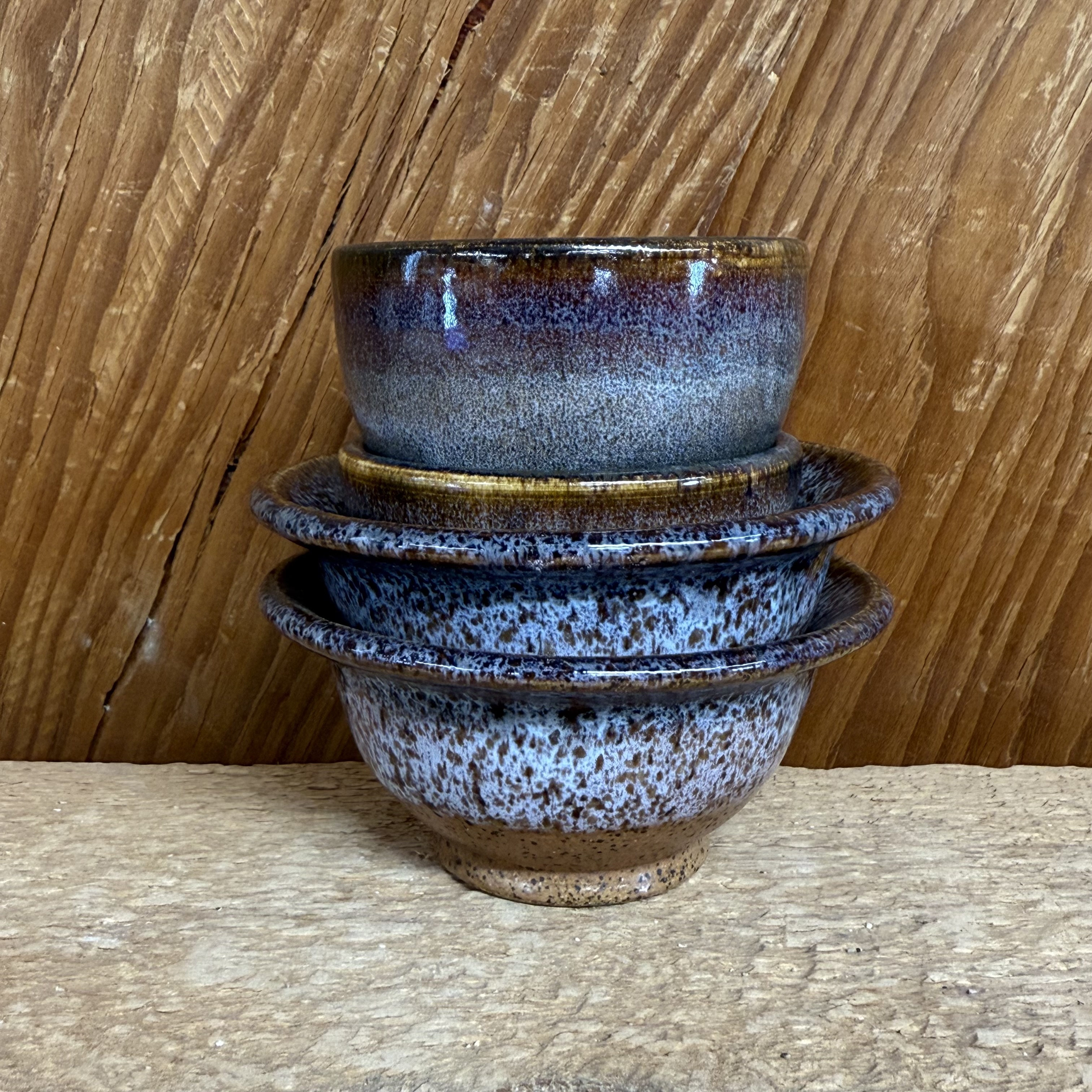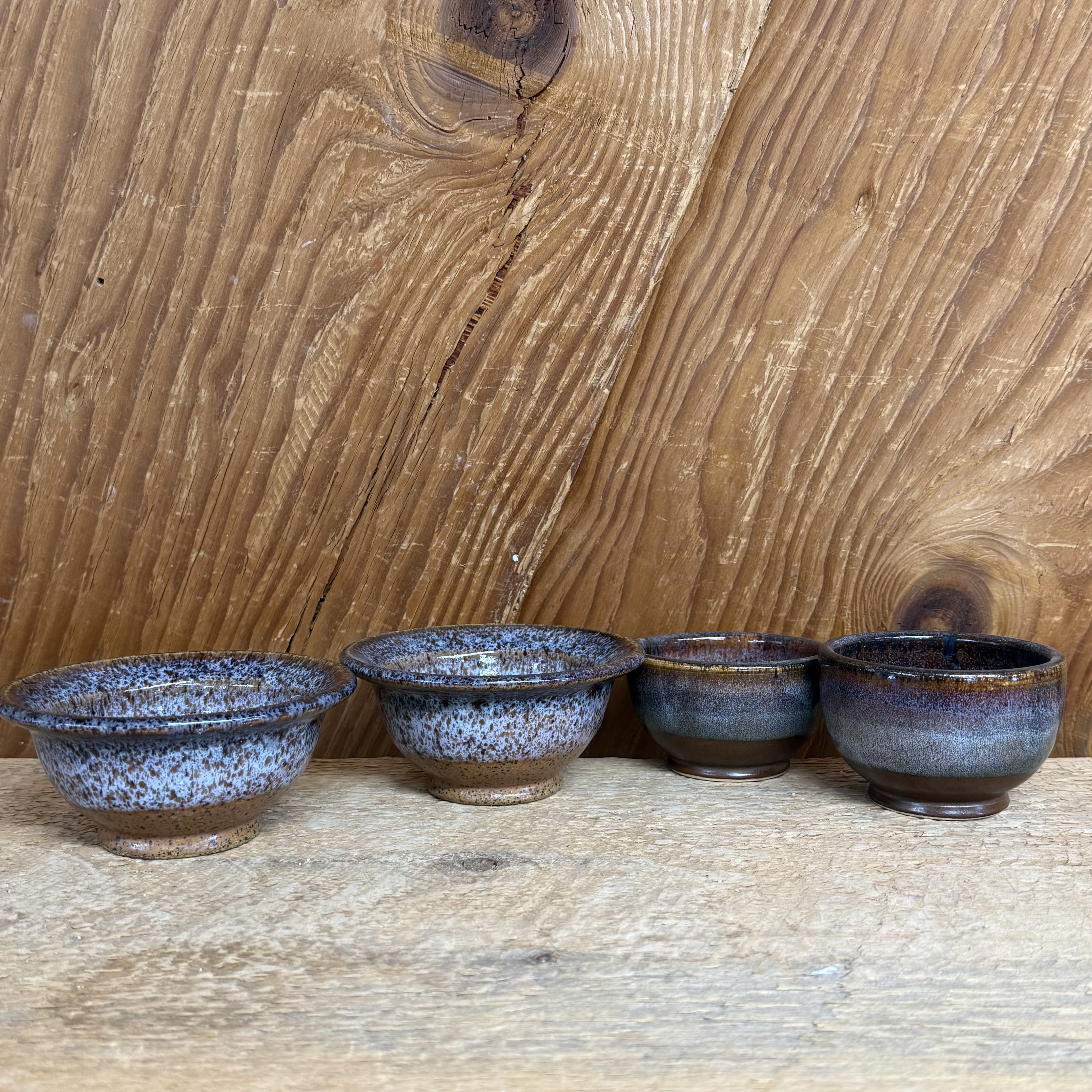 Say Congratulations and Best Wishes to Jessica and John with this set of 4 small bowls picked out by the couple. These are typically the smallest bowls we make on a regular basis. These bowls can be used for so many things, and are used by people who like to cook for seasonings. All of our pottery is lead free and dishwasher, microwave, and oven safe. Glazed in our brown glaze and our sienna/ burnt orange base color that matches #2010 on their registry.